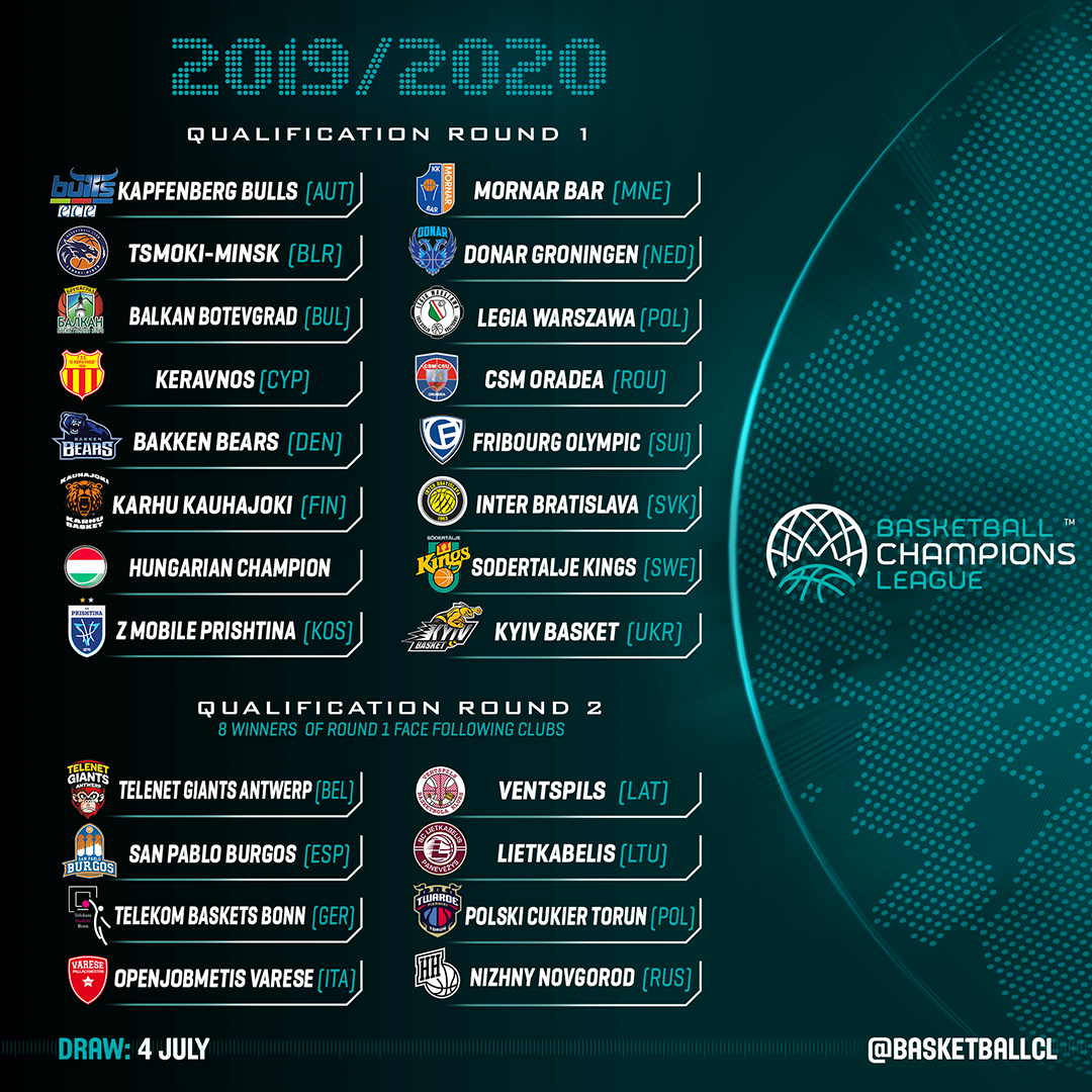 Tragerea la sorți a jocurilor din preliminarii, dar și a componenței grupelor Basketball Champions League – ediția 2018/19 este programată pentru data de 4 iulie anul curent, la House of Basketball, în Mies, Elveția. Ceremonia va fi precedată de un workshop destinat reprezentanților cluburilor participante în competiție.