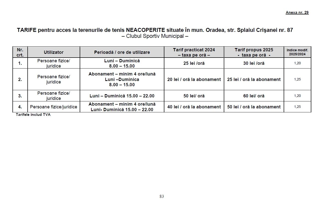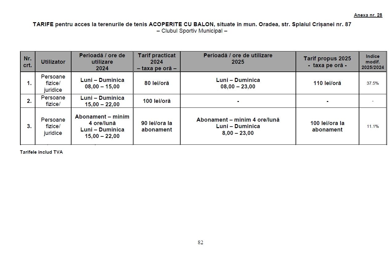 Tarife practicate în anul 2025, conform Hotărârii de Consiliu Local Nr. 924/2024.