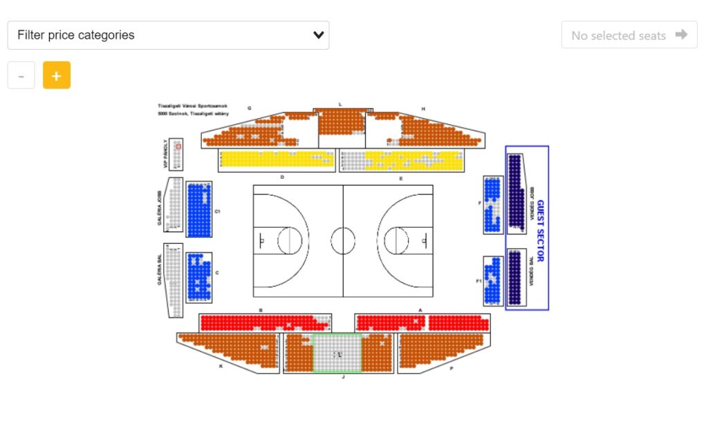 Pentru a simplifica procesul de identificare a sectorului de tribună rezervat suporterilor orădeni a fost introdus un filtru denumit „Vendég ülo”. Gazdele au rugămintea ca suporterii orădeni să respecte aceste indicații pentru a ajuta atât la siguranța participanților la meci, cât și pentru a le oferi acestora cea mai bună experiență posibiliă în incinta Tiszaligeti Városi Sportcsarnok (adresa sălii: 5000 Szolnok, Tiszaligeti sétány 9691/12 hsz).
